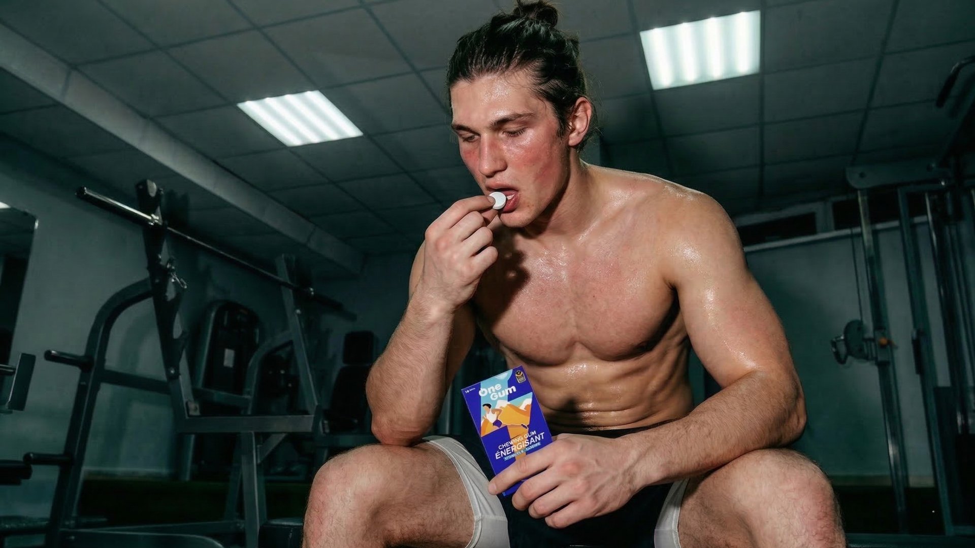 A OneGum tiszta koffeinnel és B3, B6, B12 vitaminokkal pörget fel edzés előtt.